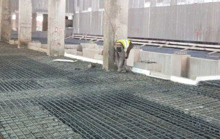 Το έργο περιλαμβάνει την ενίσχυση με χυτό σκυρόδεμα υφιστάμενης πλάκας σε βιομηχανική εγκατάσταση στη Β. Εύβοια. Περιλαμβάνει την τοποθέτηση πάνω από 10,000 βλήτρων για τη σύνδεση παλαιού και νέου σκυροδέματος.