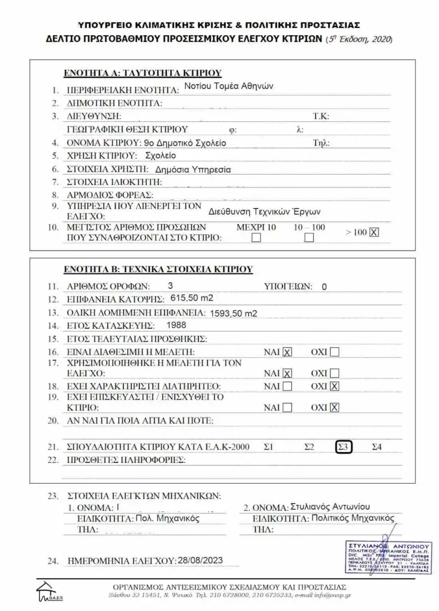 First-level pre-seismic assessment of the school buildings of the Municipality of Agios DimitriosStelios2024-10-11T14:57:54+02:00