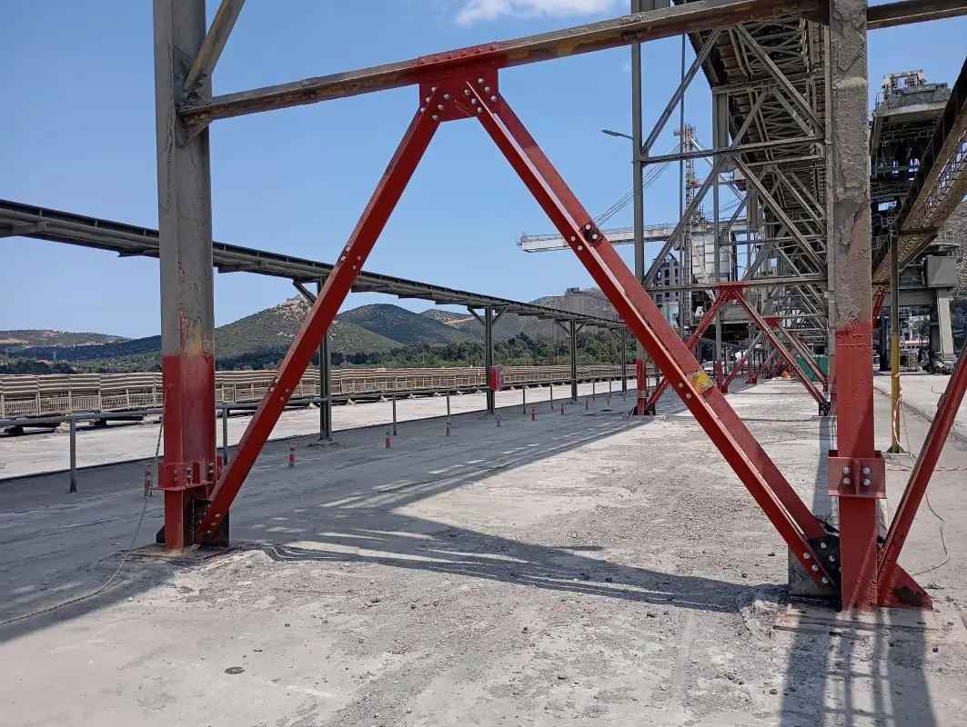 Μετά την ολοκλήρωση των εργασιών ενίσχυσης, εφαρμόστηκε σύστημα αντιδιαβρωτικής προστασίας μέσω βαφής, ενώ οι βάσεις των υποστυλωμάτων εγκιβωτίστηκαν σε τάκους από οπλισμένο σκυρόδεμα, με στόχο τη μακροχρόνια προστασία του φορέα από μελλοντική διάβρωση.
